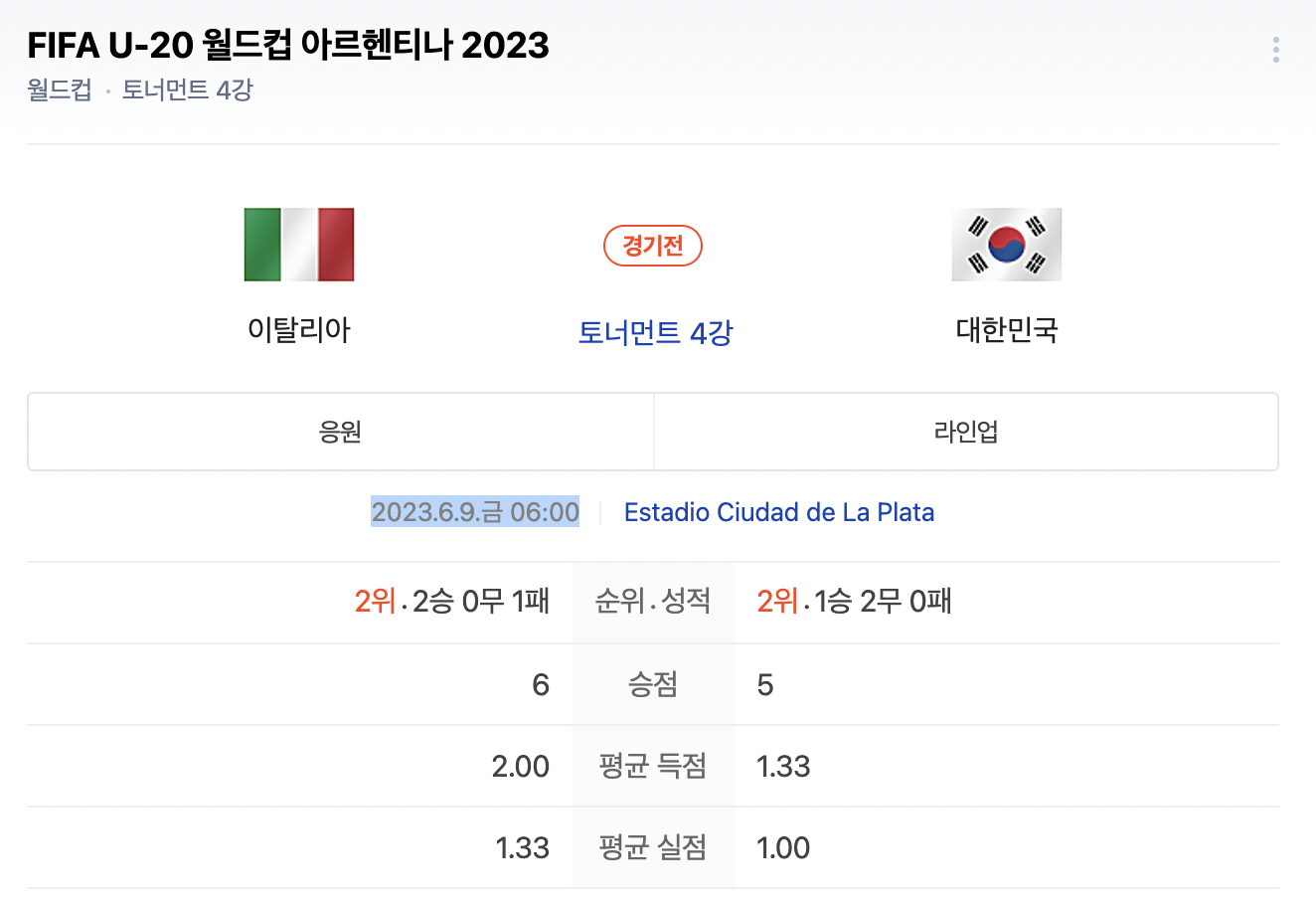 - 경기 시간 : 2023.6.9.금 06:00